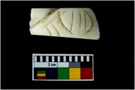| Description / विवरण | A broken fragment of a decorated shell bangle. It is creamish in colour with rectangular cross section. |