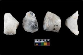 | Description / विवरण | A specimen of a fluted core having several broad fluted marks indicating the detached blades from it |