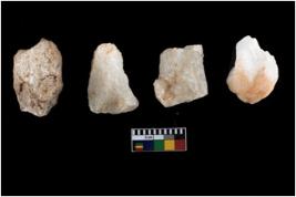 | Description / विवरण | A specimen of a fluted core having several broad fluted marks indicating the detached blades from it |