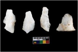 | Description / विवरण | A specimen of a fluted core having several broad fluted marks indicating the detached blades from it |