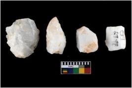 | Description / विवरण | A specimen of a fluted core having several broad fluted marks indicating the detached blades from it |
