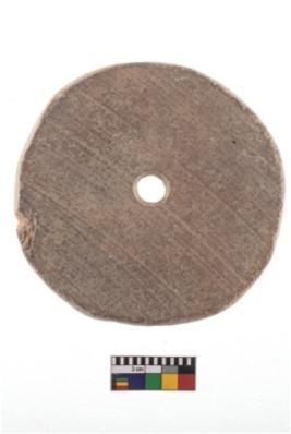 | Description / विवरण | A perforated disc of Grey Ware. |