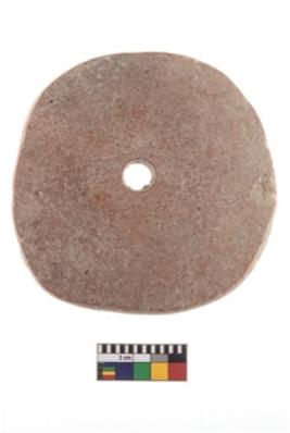 | Description / विवरण | Terracotta perforated disc with circular shape and irregular edges round perforation in the middle, reddish in colour. |