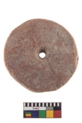| Description / विवरण | Terracotta perforated disc with circular shape and irregular edges round perforation in the middle, reddish in colour. |