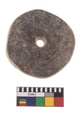 | Description / विवरण | A perforated disc of Grey Ware. |