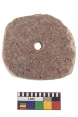 | Description / विवरण | Terracotta perforated disc with circular shape and irregular edges round perforation in the middle, reddish in colour. |