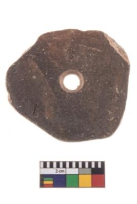 | Description / विवरण | Terracotta perforated disc with circular shape and irregular edges round perforation in the middle, reddish in colour. |