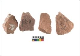| Description / विवरण | Specimen of flake tools with prominent flaking marks. It made up of a short flakes with sides trimmed. |