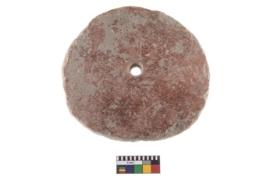 | Description / विवरण | A perforated disc of Black on Red Ware with horizontal bands at regular intervals. |