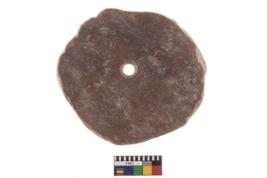 | Description / विवरण | Terracotta perforated disc with circular shape and irregular edges round perforation in the middle, Red on black it might be having black painted on the surface. |