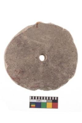 | Description / विवरण | Terracotta perforated disc with circular shape and irregular edges round perforation in the middle, reddish in colour. |
