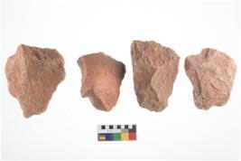 | Description / विवरण | Specimen of flake tools with prominent flaking marks. It made up of a short flakes with sides trimmed. |