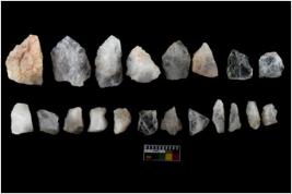 | Description / विवरण | There are n-20 of intact flake cores made up of Quartz. Some of them have bulge of percussion and some are flat flakes. |