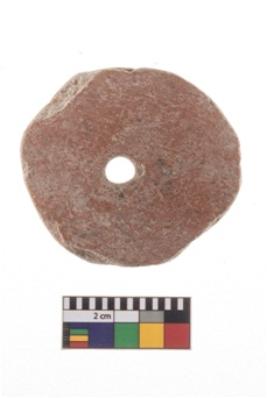 | Description / विवरण | Terracotta perforated disc with circular shape and irregular edges round perforation in the middle, reddish in colour. |
