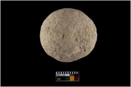 | Description / विवरण | A partrially broken specimen of a slingball made of quartz , it is circular in shape and with rough surface, |