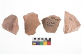 | Description / विवरण | Specimen of flake tools with prominent flaking marks. It made up of a short flakes with sides trimmed. |