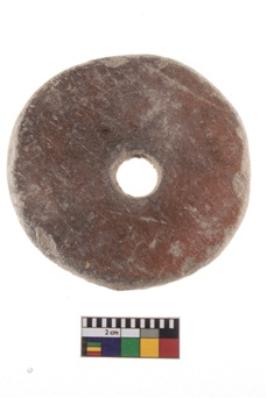 | Description / विवरण | Terracotta perforated disc with circular shape and irregular edges round perforation in the middle, reddish in colour. |
