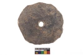 | Description / विवरण | Terracotta perforated disc with circular shape and irregular edges round perforation in the middle, reddish in colour. |
