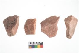 | Description / विवरण | Specimen of flake tools with prominent flaking marks. It made up of a short flakes with sides trimmed. |