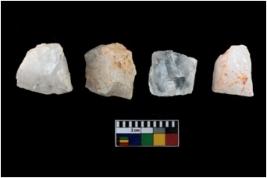 | Description / विवरण | A specimen of a fluted core having several broad fluted marks indicating the detached blades from it |