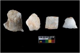 | Description / विवरण | A specimen of a fluted core having several broad fluted marks indicating the detached blades from it |