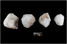 | Description / विवरण | A specimen of a fluted core having several broad fluted marks indicating the detached blades from it |