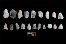 | Description / विवरण | There are n-20 of intact flake cores made up of Quartz. Some of them have bulge of percussion and some are flat flakes. |