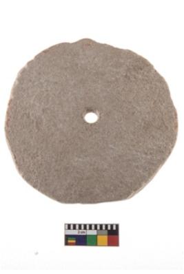 | Description / विवरण | Terracotta perforated disc with circular shape and irregular edges round perforation in the middle, reddish in colour. |