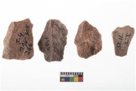 | Description / विवरण | A specimen of flake tool with prominent flaking marks. It made up of a short flakes with sides trimmed. It is rectangular in shaped |
