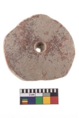 | Description / विवरण | Terracotta perforated disc with circular shape and irregular edges round perforation in the middle, reddish in colour. |