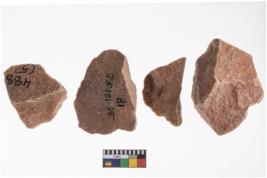 | Description / विवरण | A specimen of flake tool with prominent flaking marks. It made up of a short flakes with sides trimmed. It is rectangular in shaped |