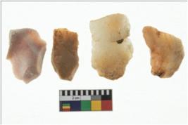 | Description / विवरण | Four worked utilised flakes. Most of them are uneven with sharp edges. |