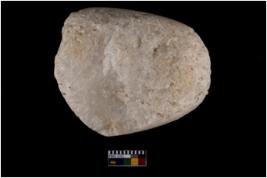 | Description / विवरण | A partially broken specimen of a muller most probably the bottom portion of the holding end,it is made of quartz, It has battered base and smooth rounded end . |