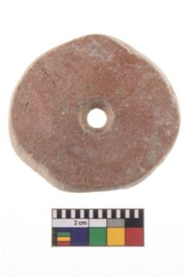 | Description / विवरण | Terracotta perforated disc with circular shape and irregular edges round perforation in the middle, reddish in colour. |