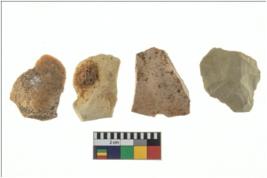 | Description / विवरण | Four worked utilised flakes. Most of them are uneven with sharp edges. |