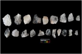 | Description / विवरण | There are n-20 of intact flake cores made up of Quartz. Some of them have bulge of percussion and some are flat flakes. |