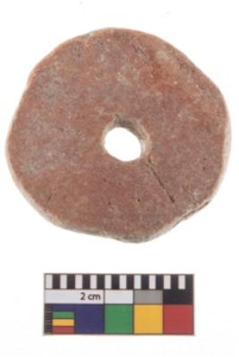 | Description / विवरण | A perforated disc of Red Ware. |