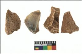 | Description / विवरण | Four worked utilised flakes. Most of them are uneven with sharp edges. |