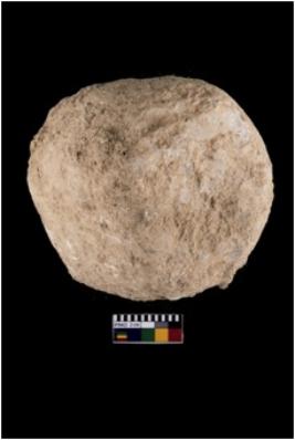 | Description / विवरण | A complete specimen of a hammerstone made of quartz, It is roughly circular in shape, It has rough and battered surface |