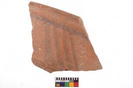 | Description / विवरण | Specimen of potsherd with decorative geometric Linear Pattern painting, Type Black on Red Ware . |