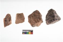 | Description / विवरण | A specimen of flake tool with prominent flaking marks. It made up of a short flakes with sides trimmed. It is rectangular in shaped |