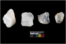 | Description / विवरण | A specimen of a fluted core having few fluted marks before removing of blades form it. It is roughly rounded in shape and white in colour. |