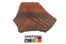 | Description / विवरण | Specimen of potsherd with decorative geometric Linear Pattern painting, Type Black on Red Ware . |