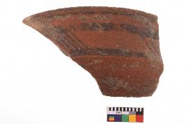 | Description / विवरण | Specimen of potsherd with decorative geometric Linear Pattern painting, Type Black on Red Ware . |
