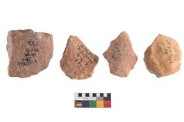 | Description / विवरण | Specimen of flake tools with prominent flaking marks. It made up of a short flakes with sides trimmed. |