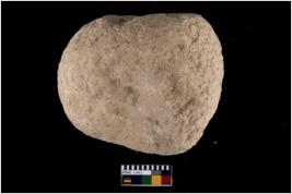 | Description / विवरण | A complete specimen of hammerstone made of quartz, It is a round shaped with battered periphery along the circumferenve in shape. |