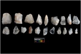 | Description / विवरण | There are n-20 of intact flake cores made up of Quartz. Some of them have bulge of percussion and some are flat flakes. |