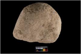 | Description / विवरण | A partially broken specimen of muller made of quartz, It is a roughly rectangular in section and with prominent holding end, Its middle portion is thinned due to use. |