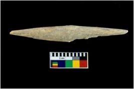 | Description / विवरण | A specimen of bone point with conical body and circular cross section. It is creamish in colour. |