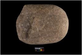 | Description / विवरण | A partially broken specimen of muller made of quartzite, most probably a portion of a bottom half, It has rounded edges, flat sides and rounded holding end it has smooth surface |